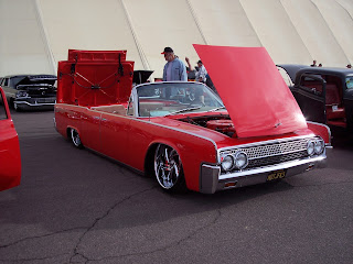 This year we made the March Good Guys show in Scottsdale AZ. Last year we had to cancel as I was working in San Diego. The weather was great with the temp in the 70's and low 80's. We had another trailer tire blow out on the way, in a bad location, on the 101 loop freeway in Scottsdale and the trailer lights plug in the back of the truck keep coming unplugged so it took 6 hours to get to West-world rather than 3. Arrived on Thursday, set the camper up and checked in then on Friday took the Kaiser into the show.