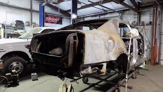 Most of the burned areas were cut off so I could get to the inner wheel wells and subframe that I wanted to save. The trunk floor pan spare tire area were to far gone to save.
