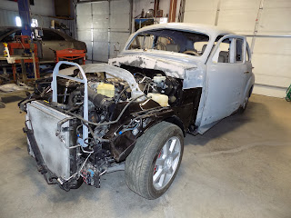 Last post I started to install the permanent parts in the 41 Cadillac and have continued to get it running before I start on the body. I started to incorporate an 2007 Cadillac STS into the 41 but as the project progressed the 07 was to badly burned in the rear to be able to use all the parts. I found a 2005 STS salvage car that had been rear ended with rear sheet metal damage but all the rest of the car was in running order. Now I have put all the 2005 parts into the 41. I think that I will call it the 4105.